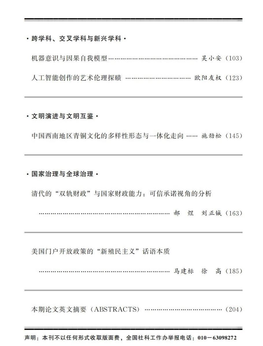 《中国社会科学》被学界誉为我国最高水平的综合类人文社会科学期刊,主要刊发哲学社会科学研究领域具有普遍意义的热点性、前沿性研究成果。